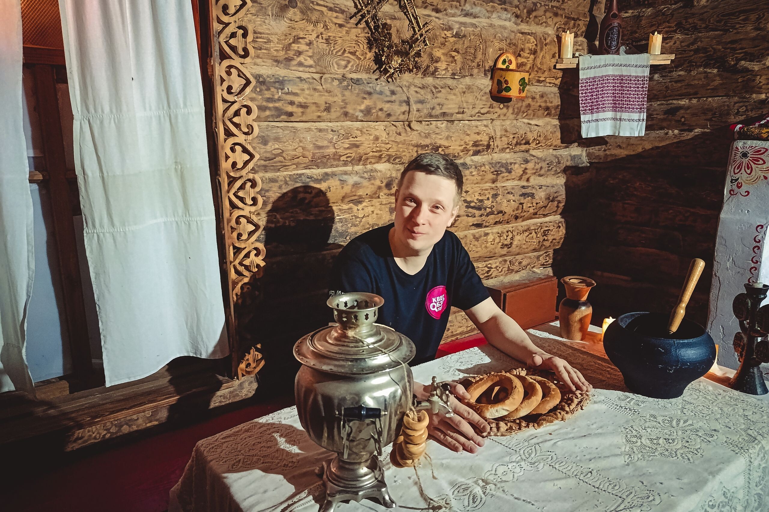 Его частный мини-музей представляет из себя удивительный мир, полный загадок и тайн. Совсем недавно он, кстати, расширился и сейчас только разбирает многочисленные коробки. Приглашеные на экскурсию сюда получить совсем не просто, но все-таки иногда молодой человек делает исключения. Если считает гостей того достойными. Символично. Суетливый парень в больших очках отворяет дверь, сразу же приглашая ребят зайти с заснеженного Екатеринбурга в теплое помещение, и даже предлагает тапачки, ведь музей расположился прямиком у него дома. Слегка застенчиво он предлагает ребятам расположиться, а сам утыкается в книгу об Александре Невском. История - его страсть 📖 Экскурсия вот-вот начнется. Трудовая, правда. Работы предстоит немало! Коробки сами себя не разберут. Однако первым делом хозяин рассказывает об истории Свердловского края и окружающих его столицу городах. Фотографии на стенах иллюстрируют развитие промышленного края. Хотя пуще всего интересна всем одна единственная легенда. О древнем идоле, историю появления которого на этой планете не знает буквально никто. От того нашему главному герою она столь и интересна! Скорее всего завязаны в ней силы необъяснимые. Много лет парень изучал всевозможные книги, которые не найти в библиотеке, пытаясь докопаться до правды. "Что это же изваяние? На что оно способно? Кто его создатель?" - вопросы, настолько будоражащие сознание, что, получив часть ответов, хозяин музея даже придумал небольшой спектакль. Кстати, его репетиция назначена на сегодня. Конечно же, гости музея хотят посмотреть. Ведь гости они еще и Урала ☺ Ребята усаживаются на мягкий диван в предвкушении шоу. Но даже предпложить не могут, что оно захватит их дух полностью, унеся от реальности, ведь это шоу... Теней! На белой ткани появляются яркие огоньки. Они рассказывают старинную историю. О древних Богах, что хранили мироздание в равновесии. О тьме, что явилась из ниоткуда, ведь добра не может существовать без зла. Об ожесточенной войне. О падении прямиком на Землю. О становлении нового царства. О рогатом существе, что являлось жителям деревень Русских, когда те оказывались в отчаянии. Оно предлагало им сделку. Решение всех проблем в обмен на... Ну вы поняли. Цена очень высока, но и народ тогда был куда более наивный. Люди не просто соглашались на предложения темной силы, но и стали поклоняться ей. Урожаи распускались, скот переставал болеть. Что еще нужно? Сыт да счастлив народ Руси. Под покровительством демона... А девки-то! Пришли они к нему, когда мужья в ратном бою головы сложили, пали на колени, головы склонили. Исполнил темный Бог их желания 😰 Узнали об этом силы высшие, спустились сами на Землю. Да как грянет бой! Так и появился идол. Зал рукоплещет от захыватывающего дух шоу удивительной красоты. А хозяин и говорит, мол есть у него тоже идол старинный, а в роду колдуны были. К этому моменту герои оказались достаточно заинтригованы, чтобы согласиться буквально на все. В их руках деревянное извание, а в кулак хозяина сжимает нож... Слова произнесены, начертанные на хозяйственном шкафе руны окроплены кровью. Бах! Сами не заметили друзья, как оказались в избе старинной смотрят. Диву далась красна девица, что в хате ее незнакомцы очутились. "Откуда они пришли? Чего хотят? Почему пожаловать решили именно к ней?" - удивлена дева да гостеприимн